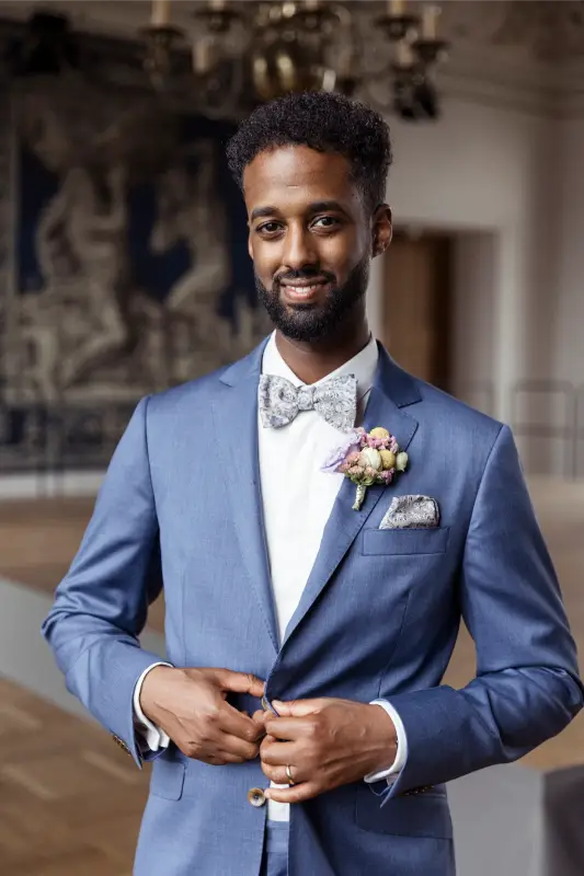 Was sind Ihre Wünsche? Wie stellen Sie sich Ihre Hochzeit vor? Auf Basis Ihrer Vorstellungen entwickeln wir mit Ihnen Ihren ganz persönlichen Hochzeitsanzug. Dabei achten wir darauf, dass jedes Detail perfekt auf Sie abgestimmt ist – von der Stoffwahl über den Schnitt bis hin zu den Accessoires. So entsteht ein Anzug, der genau die Wirkung erzielt, die Sie sich wünschen: elegant, selbstbewusst und unverwechselbar.